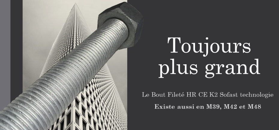 En effet, pour répondre aux besoins de ses clients et s'adapter à un marché en perpétuel évolution, SOFAST Technologie fabrique maintenant les Bouts Filetés HR CE K2 en diamètre