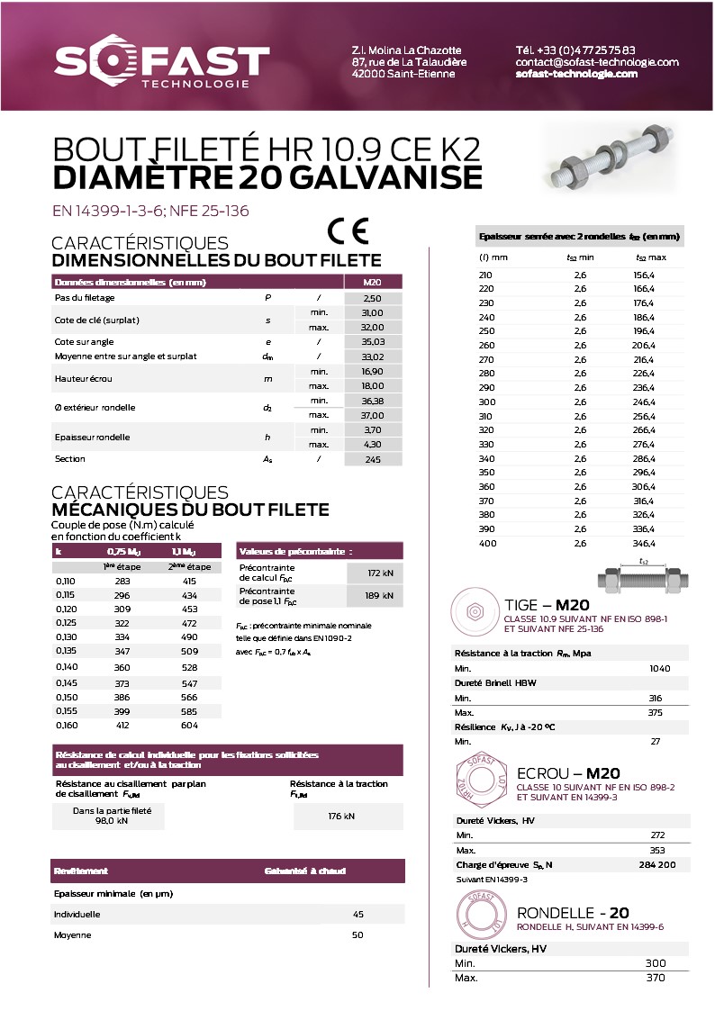 SOFAST Technologie propose désormais des fiches techniques pour les bouts filetés fabriqués