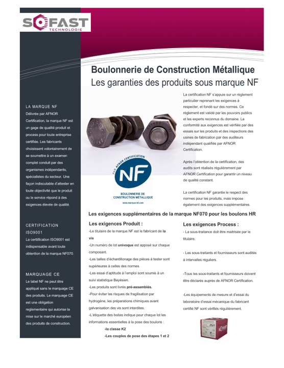 SOFAST Technologie met à disposition de tous un support complet sur les garanties que la certification NF070 donne à ses produits. Pour télécharger ce document, suivez le lien !!
